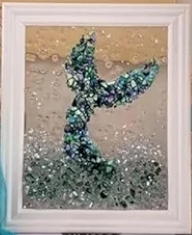 In our Crushed Glass Fusion Art class, you’ll create an 8×10 framed artwork using crushed glass, resin, and beautiful embellishments like shells and starfish.